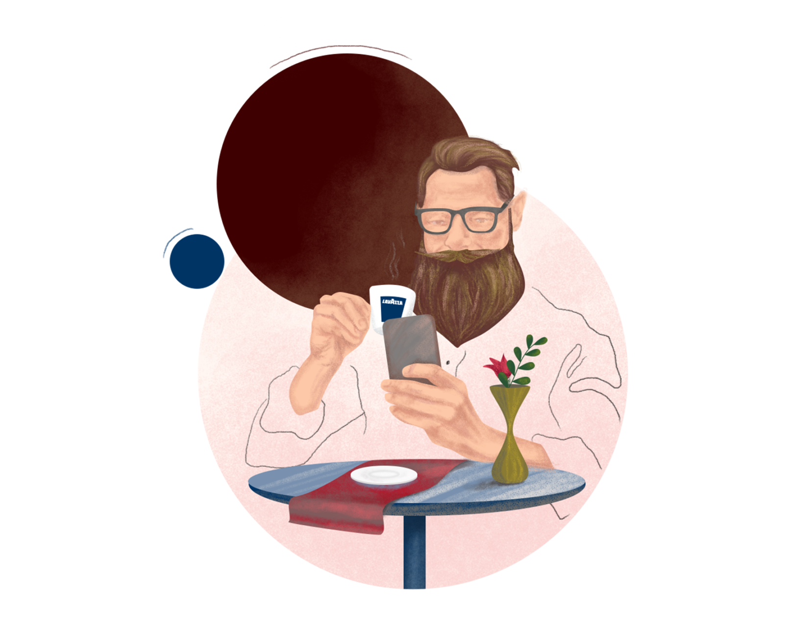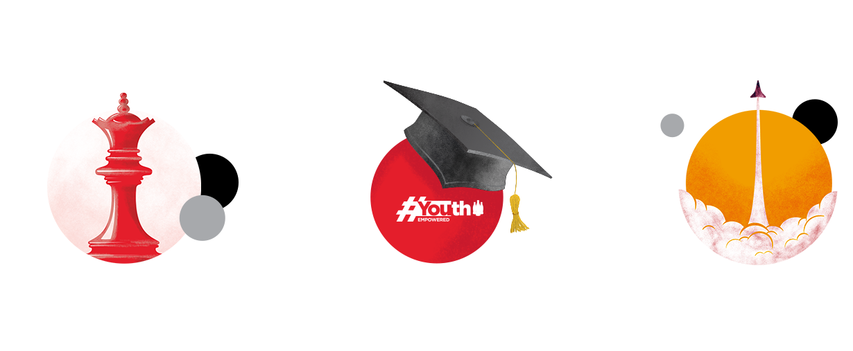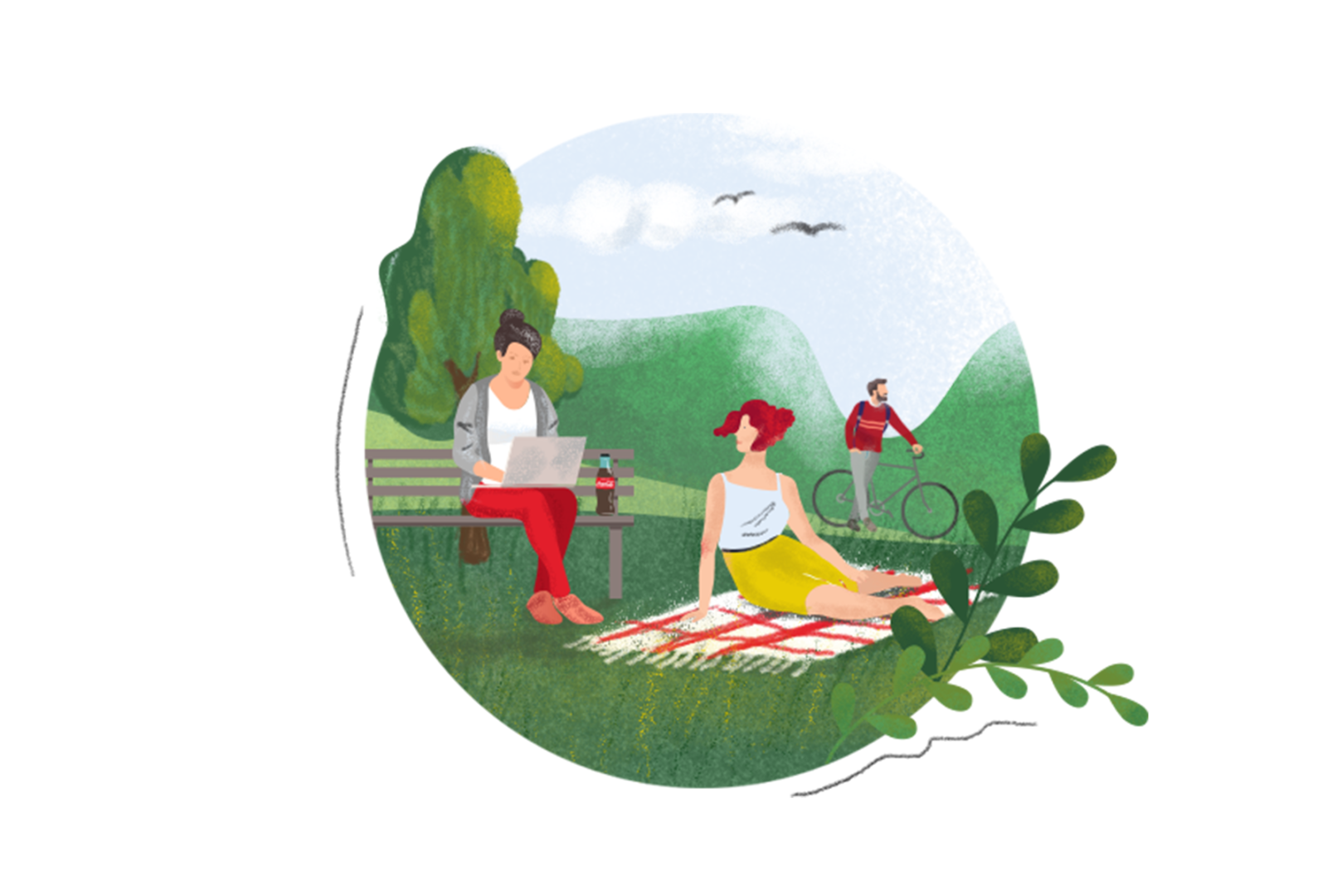 A set of few illustrations related to the wide range of Coca-Cola products, company strategy, career growth and education programs.
