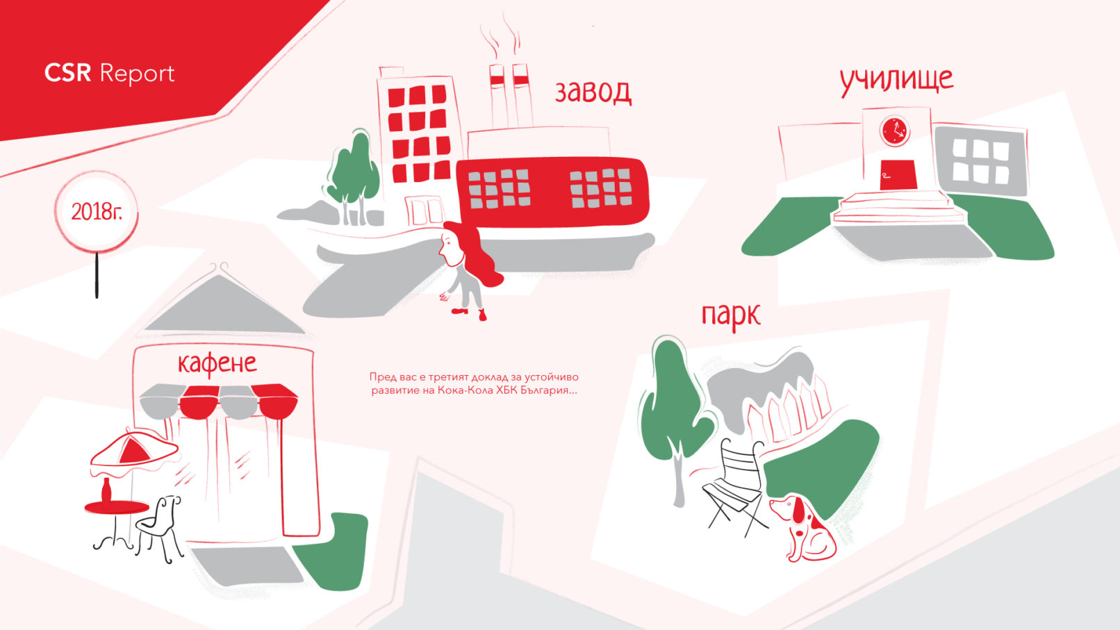 The 2017 CSR report of Coca-Cola HBC Bulgaria presents the data for all main themes and key messages through illustrations.